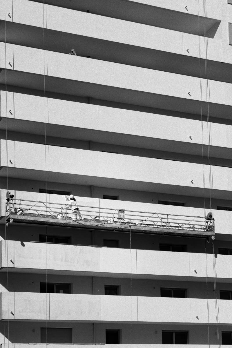 Pour cette opération des "Docks Libres", les compagnons de la société Delagarde ont réalisé plusieurs travaux. Nous avons appliqué un revêtement en Zinc prépatiné, un enduit de ravalement blanc ainsi qu'une lasure sur le béton matricé. Nous avons également appliqué une peinture de façade, couvert les joints de dilatation, réalisé un ragréage du support en béton et pour finir, nous avons peints les gardes corps.